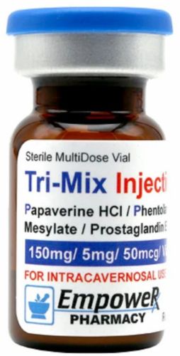 Contact SupplierTriMix is so named because it is a compounded drug comprised of a mixture of three drugs namely phentolamine, papaverine and alprostadil in varying concentrations. This drug is not readily available in traditional retail pharmacies but must be specially made at compounding pharmacies. The components of TriMix have been shown to exert a synergistic effect in causing sustained penile erections in individuals suffering from ED. In contrast to the first-line drug treatment of ED, PDE5 inhibitors, which are administered orally, TriMix is an injectable medication which is administered locally into the . This medication is typically compounded at dosages that are tailored to the requirements of each individual. Discussed below are more details about the components of TriMix injection.