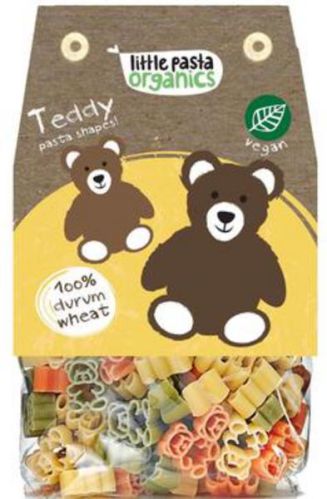 Organic Teddy Bear Pasta no added salt, no added sugar, ingredients: Durum wheat semolina, Beet 1%, Spinach 1%, Cucma 1%, Paprika 1%, Black Cuttlefish 0.5%. About Organic Teddy Bear Pasta no added salt, no added sugar, Great novelty treat for kids and adults alike. This is high quality durum wheat pasta with totally natural colouring from spinach, beetroot, tomato, carrots, egg etc. Lovely with many different types of sauces both tomato and cream based. Looks great and tastes delicious!