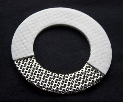 100% expanded PTFE gasket with fully encapsulated corrugated, stainless steel insert. Patented construction transforms conventional ePTFE into a “spring energized” PTFE gasket that maintains high tightness throughout thermal cycling in all chemical services.
