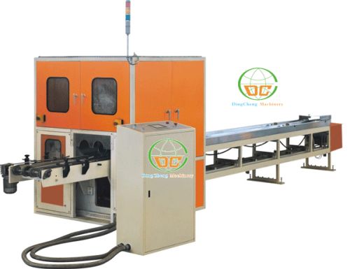 this machine is used to cut long toilet paper rolls and kitchen towel rolls into short rolls as the picture shown above. It is automatic type.