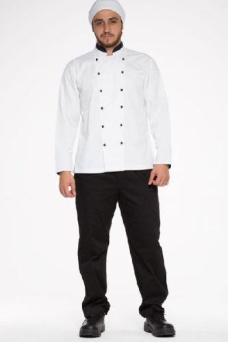 Chef Jacket Long sleeve Chef jacket with contrast piping across front, collar & sleeve hem Long sleeve Chef button closure Unisex Contrast collar & Inside cuff Customised logo on the left chest....