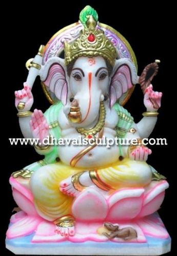 this beautiful marble statue depicts lord ganpati seated on his lotus seat, with his vehicle the tiny rat by his side. Buy this statue today to add to your temple and feel blessed every day by looking at this lord ganapati marble statue. Order today!