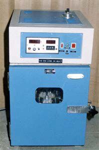Description: Unit consists of inner SS chamber & outer MS powder coated finish with heating SS finned “U” type arrangement controlled by digital temperature controller cum indicator with PT100 sensor for maintaining desired temp. One perforated metal shelf made of aluminum with rotating shaft rotating at constant speed 5rpm, Digital timing device coupled with the digital temp controller cum indicator, and cylindrical metal container with flat bottom in specified dimensions. Air circulation with motorized blower for uniformity of temperature inside the chamber.