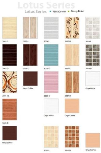 We are counted among the chief Manufacturers, Exporters, and Suppliers of Lotus Series Wall Tiles. We provide Lotus Series Wall Tiles that are designed by our experts at our state of the art facility. Our Lotus Series Wall Tiles are available in various colors, and designs, and have the capability of changing the ambience of an establishment to a natural and exotic one. Known For Optimum qualityEasy maintenanceHigh finishingAesthetic appeal