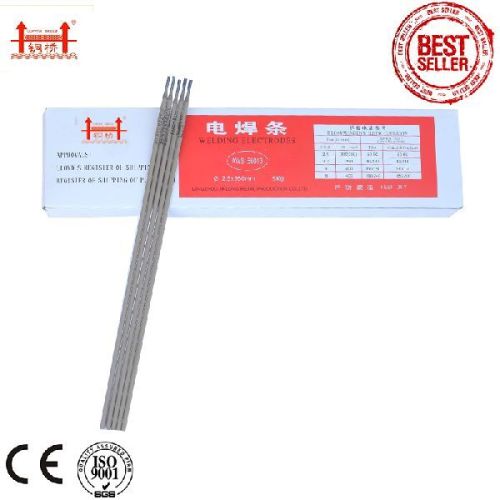 Contact SupplierLow Hydrogen Welding Electrode AWS A5.1 E7016 Copper Bridge brand J506(AWSE7016) is a low hydrogen potassium coated type electrode of superior quality for carbon steel .The finish weld has good mechanical properties and crack resistance ,the bead surface looks neat and fine .With little spatter ,easy to remove the slag ,the electrode gives good welding technological performance .It can be used on both AC and DC .When used AC,the open circuit voltage must be more than 60V. Before welding ,it is necessary to clean the weldpiece and remove impurities such as oil and grease rust and moisture ,and bake the electrodes at about 350 for one hour . Package: 2.5mmX300mm 2.5kg/box,8boxes to one carton=20kgs 3.2mmX350mm 5.0kg/box,4boxes to one carton=20kgs 4.0mmX400mm  5.0kg/box,4boxes to one carton=20kgs Reference Current (AC, DC)  Diameter  2.5mm 3.2mm 4.0mm 5.0mm Current(A)  30-50 80-100 110-130 150-200  Chemical Composition Of Deposited metal Carbon (C) Manganese (Mn) Silicon (Si) Sulfur (S) Phosphorous (P) ≤0.20 0.3~0.6 ≤0.2 ≤0.035 ≤0.040  Mechanical Property Of Deposited metal Rm (Mpa) ReL (Mpa)