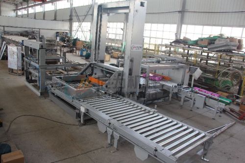 Machine frame is adopt welding way. Strond and durable, base is adjustable. the main lifting platform adopt the SEW motor drive, entry adopt accelerate conveyor to separate infeed case, stack pushing area adopt roller conveyor, 2.5m stack output, free roller conveyor, use the safety protection device, adopt Germany Siemens PLC control system, man-machine interface, portable fault automatic display