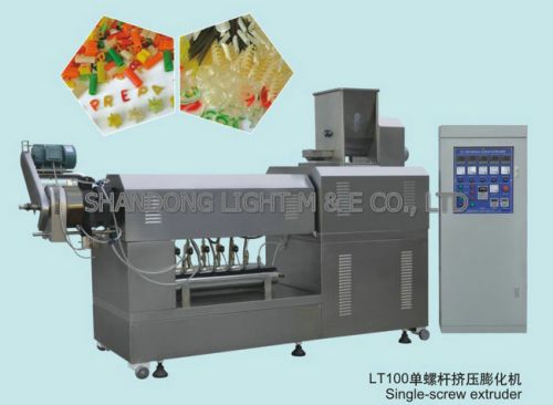We are offering lt100 single screw extruder. lt100 single screw extruder model lt 100 power 47kw main drive power 30kw output 80kg/h dimension 3.2*1.1*1.9m applied products pellet\fried snacks