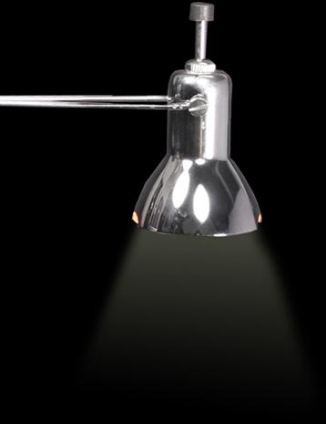 Low voltage, 50 watt spotlight with a deluxe Chrome head and "telescopic" arms. Extends from 7" to 22" long.