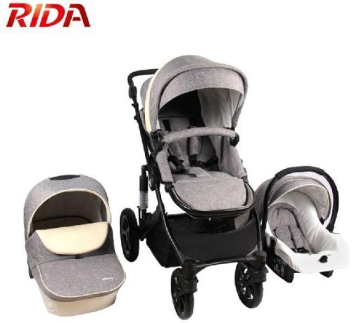EVA solid front, air rear wheel600D linen fabricCould be attached with carseat/carrycotSuitable from birth to 36months3-stage adjustable shade with a skylight Adjustable handle 85-108cmadjustable footrest and backrest 95 °-175 °Lightweight aluminium frame5-point seat harness Bearing wheels built-in shock absorber springWheels and front bar simple fast disassemblyLockable front swivel wheelsRear wheels with linked brakeLarge and easy-access shopping