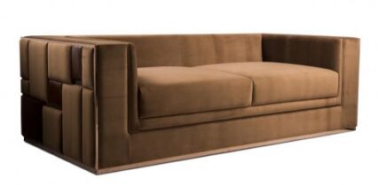 Luxury sofa of the puzzle that completes dream living space. You will love the comfort and the beauty of the soft fabric used articulously with croco leather in block pattern. Gold color profile running through all its edges is like cherry on a cake.