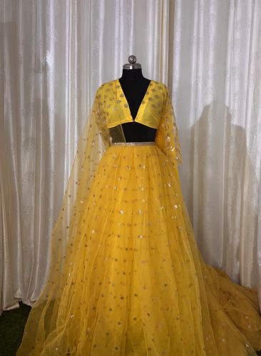 Luxury Zari Work Net Fabrics, Color : Yellow Ethnic Wear