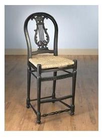 BAR STOOL LYRE 30 IN SEAT Item ID: 43530-BK Black painted finish with lyre design and rush-style seat.Dimensions 53x21.5x24 Weight 0.0000 lbs