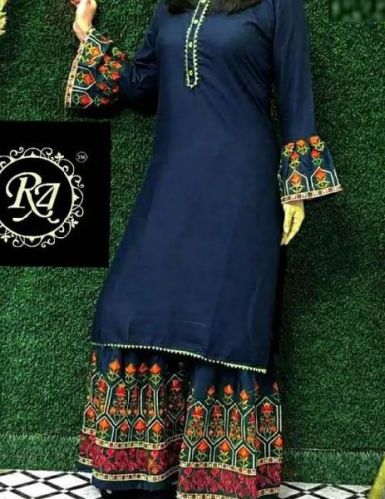 Rayon Embroidered Kurti Sharara Set, Size : L, XL, XXL
