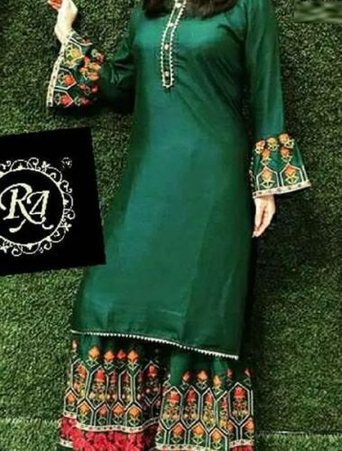 Rayon Green Kurti Sharara Set, Size : M, L, XL, XXL