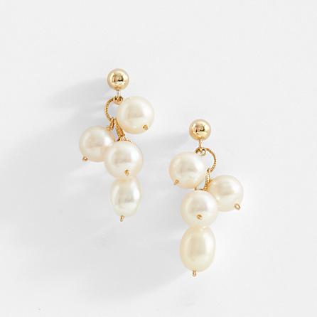Mabel Chong turns metal and stones into beautiful, powerfully feminine pieces of jewelry – a look she's trademarked as uncivilized elegance. Both modern and timeless, these delicate pearl drop earrings are an investment piece that quite simply say "I love you". Available in silver and gold-filled with four freshwater cultured pearls. Pearls measure 6.5 mm – 7.5 mm. Matching draped chain freshwater pearl bracelet sold separately. Handmade in USA. Item