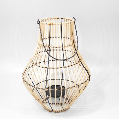 Plain Polished Wooden Rattan Lantern, Technics : Machine Made