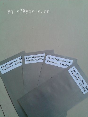 We are offering pure magnesium foil mg 99.95%min thickness: 0.05mm min 0.07mm 0.1mm 0.2mm 0.5mm width: 100mm.