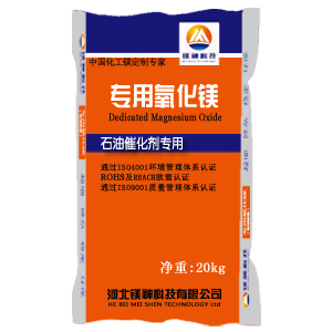 General details name: magnesium oxide for catalyst product meishen appearance: white powder grade: industrial grade function: improve the catalyst adsorption of water vapor and hydrogen sulfide, ph modification packing: 20kg net plastic woven bag with pe liner.