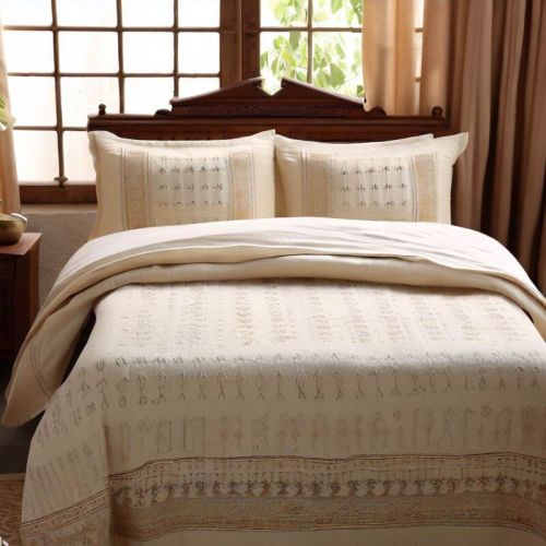Maheshwari fabric is woven in Maheshwar, Madhya Pradesh, known for its unique designs and light-weight texture. Maheshwari bedsheets exhibit delicate patterns, including stripes, checks, and floral motifs, often in contrasting colors.