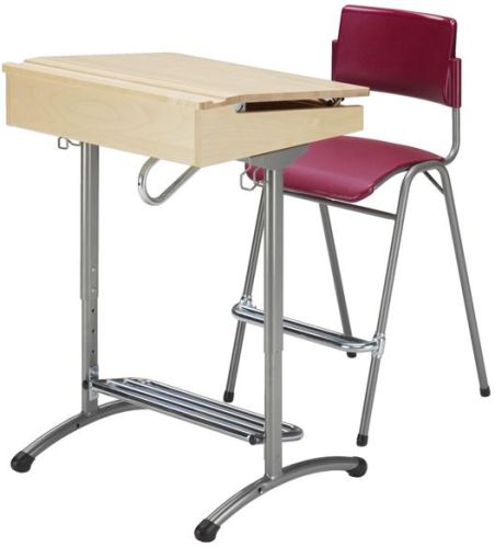 In the reading and writing position, the student works in a half-seated position in the Mandal Prima chair, with their feet on the floor or on an adjustable footrest. This will open the angle of the pelvis and improve blood flow to the lower extremities. In the listening position, the student is seated leaning on the backrest, with their feet on the footrest of the chair. For furniture with a high seating point, it is essential that they are suitable for students of different heights and that the teacher has an ergonomic working position next to the high table.