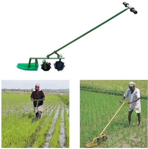 The Cono Weeder is used to remove weeds between rows of paddy crop efficiently