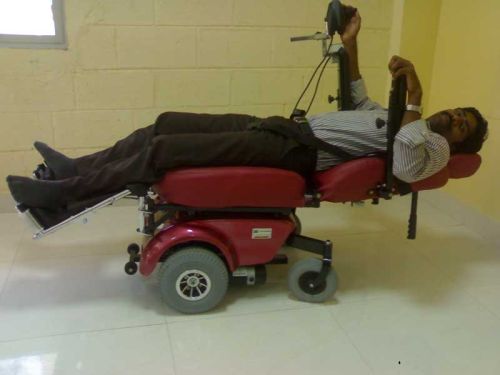 We are offering manual foot rest elivating wheelchair. this wheelchair features a powered (motorized) back rest reclining reduced stress at the back. Wheelchair has manual foot elevating feature which enables the user to strech hisher legs for better comfort.