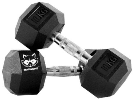 Black Rubber Mapache 10kg Hexa Dumbbells