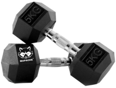 Black Rubber Mapache 5kg Hexagonal Dumbbells, For Gym Use
