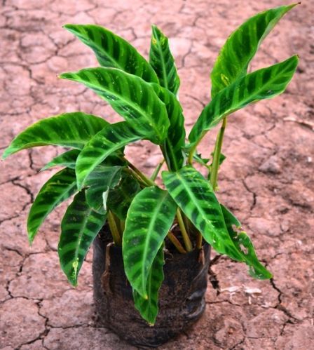 Calathea zebrina is a species of plant in the family Marantaceae, native to southeastern Brazil. It is an evergreen perennial growing to 1 m. The long stalks to 30 cm carry elliptical leaves 45 cm or more long