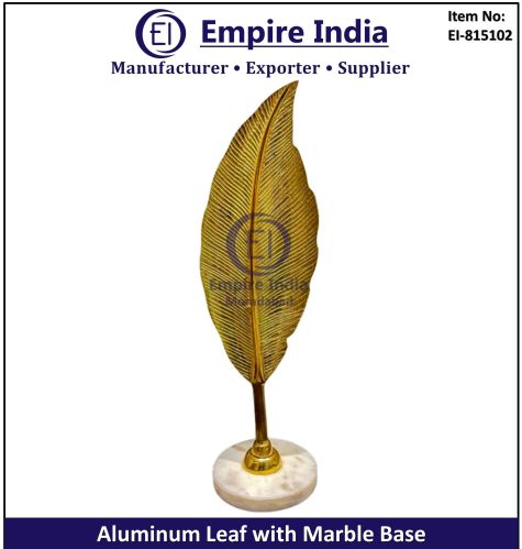 Gold Aluminum Leaf Decor, Marble Base Table Accent, Designer Metal Sculpture, Luxury Table Decor India, Modern Leaf Decorative Piece, Moradabad Metal Decor Exporter, Contemporary Office Table Decor, Handcrafted Metal Accent, Bulk Aluminum Decor Supplier, Custom Decorative Tableware, Gift Table Piece Exporter, Elegant Home Decor, Metal Leaf Marble Decor, prices, large orders, and fast worldwide delivery.