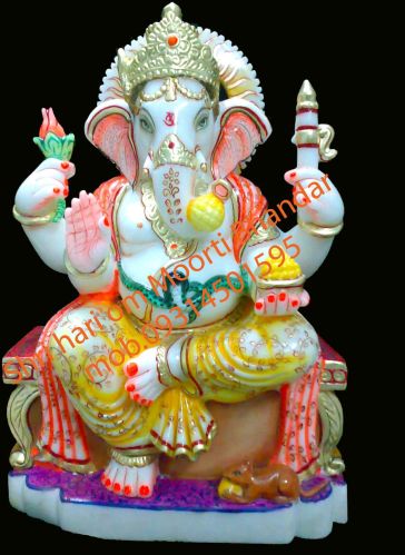 lord ganesha is one of the deities best-known and most widely worshiped in the hindu pantheon. we are offering our reputed clients a wide range of ganesh ji murti that portrays him sitting down on a lotus flower in pink and yellow colors. for highlighting his ornaments and weapons, bright golden color has been used. our designers keep in mind the standard configuration of lord ganesha who typically holds an axe or a goad in one upper arm and a noose in the other upper arm. being a symbol of good luck, he is honored at the beginning of rituals and ceremonies.