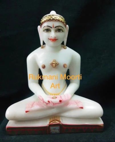 Polished Marble Mahavir Swami Statue, For Shiny, Dust Resistance, Pattern : Carved