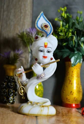 Marble Small Pankh Krishna Statue, For Temple, Interior Decor, Gifting, Packaging Type : Carton Box