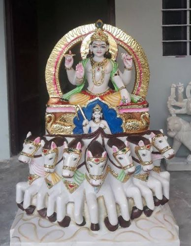 Polished Marble Surya Dev Statue, Color : Multicolors