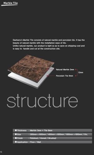 thickness marble : 3mm+tile 9mm