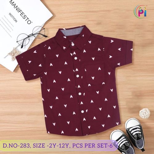 Maroon Kids Boys Printed Shirt, Packaging Type : Plastic Packet