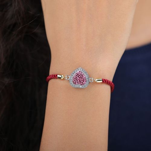 Contact SupplierMaroon Nylon Heart Shape Pink Diamond Bracelet