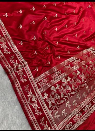 A Mashru saree features a rich silk surface with a soft cotton base, offering luxurious shine and breathable comfort. Traditionally woven, it blends heritage craftsmanship with everyday elegance, ideal for festive and cultural wear.