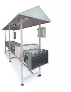 FEATURES Rigid Construction, Food grade contact parts and powder coated frames, AC drive integrated with gear box and VFD, Digital Encoder, Optional Metal Detector/ Separator, Models are available with and without canopy and illuminating lamps.