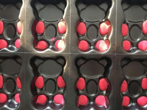 This Oil Sprayer & Multi-point Depositor & Depositor 3 in 1 machine is designed for making 2 color bear cakes. Firstly automatic oil spraying, then four points depositing chocolate dough for bear palms, lastly deposit dough for the bear body.