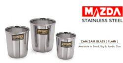 We are supplier of this product. Price - Rs.60.00 Features: - Made Up From Fine Quality Stainless Steel. Musical Glass to attract Kids. Unbreakable & Food Grade Utensils. Easy to Clean. Attractive Stainless Steel Polish. Dimensions:- Diameter: 55 MM Maximum 40 MM Minimum Inner Height: 45 MM Outer Height: 60 MM Content: - 1 Piece Availability: 100 Model: Mz Zam Zam Glass Plain Small.