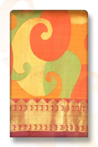 We are offering kancheepuram silk with gold jari like sarees. Hand woven silk sarees with special bright jari. Soft silk with intricate pallu and body design.