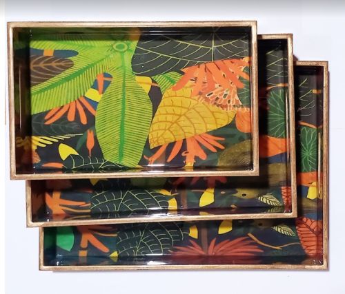 Multicolor Rectengular Polished MDF Tray Set, For Homes, Hotels, Restaurants, Size : Customised