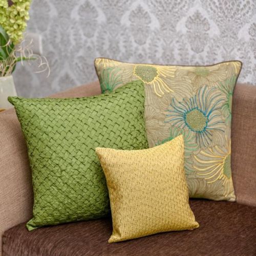 Lush/ Meadow: Greens always shout out lush and freshness. This set of 3 will definitely bring nature back to your home. Working beautifully on a beige, brown, off white or any warm tone, the 2 self textured cushion covers work as beautiful coordinated to the eye catching printed with hand machine embroidery flower pattern cushion cover. Product Details Set content: 3Â cushion covers. Flora/ Green: Printed & Hand Embroidered cushion cover (20"*20") Manifest/ Forest Green : Faux silk textured cushion cover (18"*18") Â Chicago / Lime: Silk cushion cover