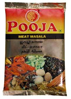 Pooja Condiments Pvt. Ltd. offers optimum quality Meat Masala, which is a fine mix of more than 25 kinds of pure natural spices. The Meat masala powder offered by us is well known for its unmatched quality, fragrance and its availability in 100 gm pouches. We have marked our presence as a distinguished Meat Masala Powder Manufacturer and one of the leading Meat Curry Masala Exporters from India. Packaging : 100 gm.