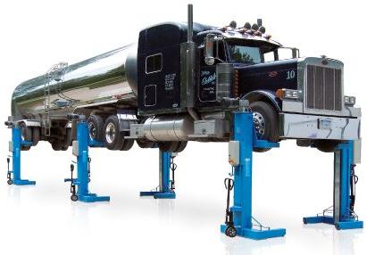 Two types of column: Master column with main control panel featuring all selection and controls. Slave Column with secondary control panel, featuring lifting and lowering controls and emergency stop button. Large and solid base for maximum stability under load.