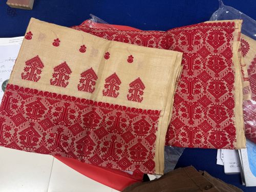 Unstitched Silk Mekhela Chadar, Packaging Type : Red