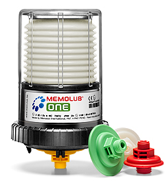 The MEMOLUB® ONE is an economical single-point, electromechanical lubricator. The simple programming and easy installation make it a great choice for your plant-wide applications. Reliable lubrication 24 hours a day, reduce equipment downtime Reusable pump - low cost replaceable lube cartridges Simple 1, 3, 6 or 12 month duration settings Battery powered - no wiring needed 3 year lubricator warranty