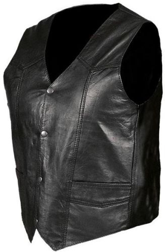 Men's Leather Motorcycle Vest Classic-style vest in a medium weight, black cowhide leather. This black vest also comes with an inside pocket, two front welt pockets, and a smooth satin lining. All of our leather is handcrafted and sizing may run small