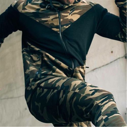 Mens Camo Patchwork Muscle Brothers Gym Sport Coat Tracksuit Hoodies